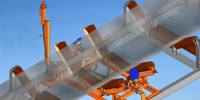 接收到检测信号后,控制器驱动调心托辊、电动执行机构或液压油缸 等,自动校正皮带跑偏。